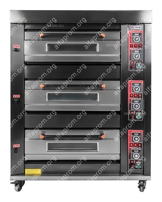 - Независимая настройка параметров для каждого яруса предоставляет возможность одновременно выпекать продукцию в различных температурных режимах