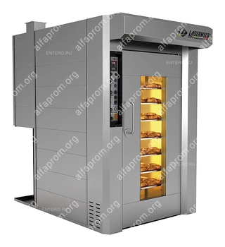 Ротационная печь Laserweld Rotor 6080 предназначена для выпечки хлебобулочных и кондитерских изделий на предприятиях общественного питания. Модель оснащена электромеханической панелью управлениях, хромированной ручкой для облегчения работы и двойным остеклением. Печь полностью выполнена из нержавеющей стали AISI 430.