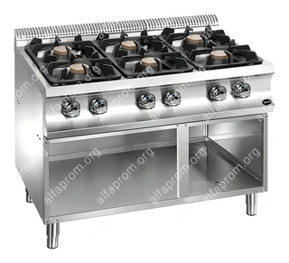 Газовая плита Apach Chef Line GLRRG129OS 900-й серии предназначена для приготовления различных блюд из мяса, птицы, рыбы и овощей в наплитной посуде на предприятиях общественного питания и торговли. Модель оснащена электромеханической панелью управления и открытой подставкой c регулируемыми по высоте ножками. Корпус выполнен из нержавеющей стали AISI 304, рабочая поверхность - из стали толщиной 2 мм, ножки - из нержавеющей стали.