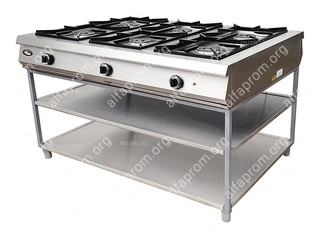 Газовая плита Grill Master Ф6П2Г/1000 предназначена для приготовления различных блюд в наплитной посуде на предприятиях общественного питания и торговли. Модель имеет подход для поваров с двух сторон, снабжена увеличенными решетками для большой наплитной посуды.