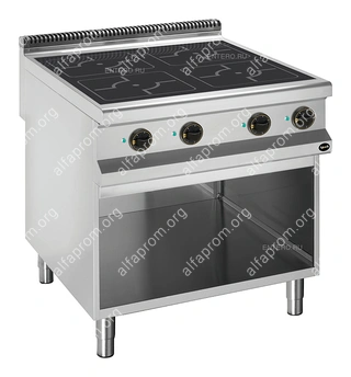 Индукционная плита Apach APRI-89P 900-й серии предназначена для приготовления различных блюд из мяса, птицы, рыбы и овощей в наплитной посуде на предприятиях общественного питания и торговли. Модель с герметично вмонтированными конфорками и 6 температурными режимами оснащена открытой подставкой с регулируемыми по высоте ножками и электромеханической панелью управления с 4 терморегуляторами и 8 световыми индикаторами. Корпус, рабочая поверхность, панель управления и вытяжная решетка выполнены из нержавеющей стали AISI 304, боковые и задняя панели - из нержавеющей …